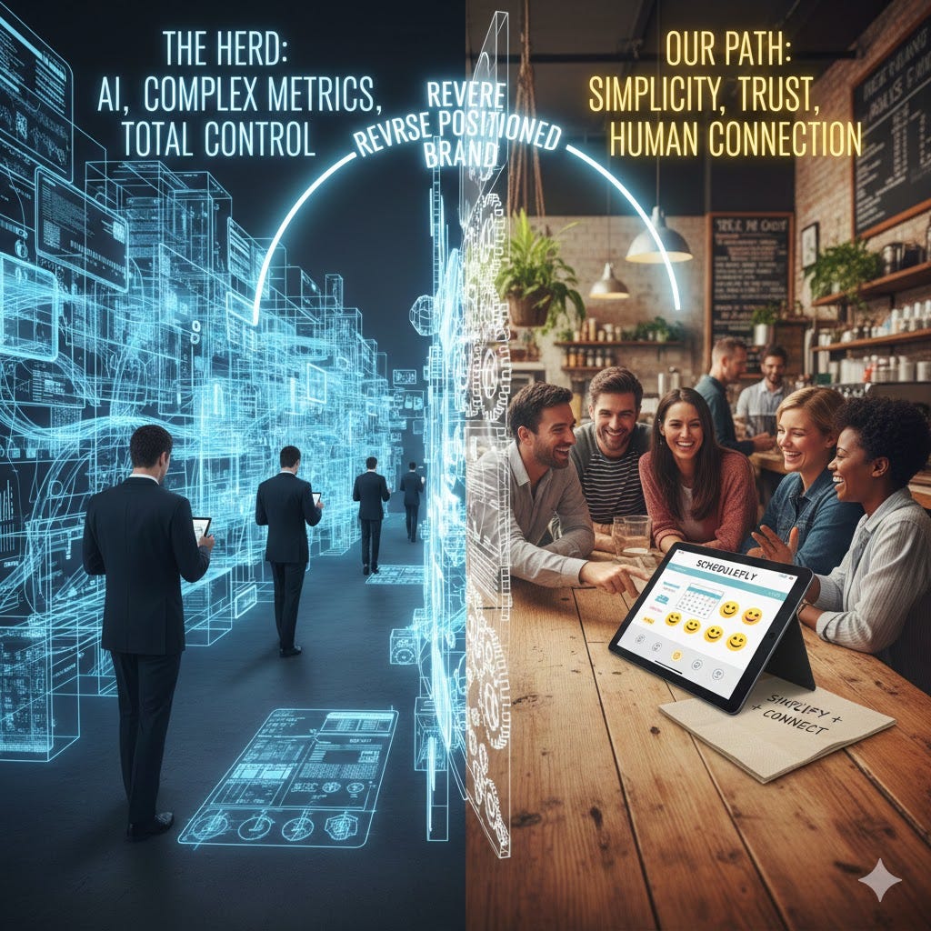 Beyond the customers we win back from the “herd,” there are still over 200,000 restaurants out there running on paper and Excel. These owners aren’t looking for an Enterprise platform or an AI forecasting engine. They are looking for a digital version of the simplicity they already have. To them, the competitors’ software looks like a cockpit they aren’t trained to fly. Schedulefly looks like a better version of the tool they already understand. We are the natural home for the “un-corporate” owner.